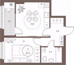 Общая площадь38,5 м²