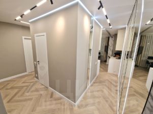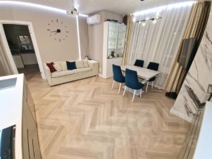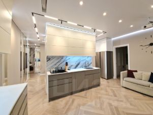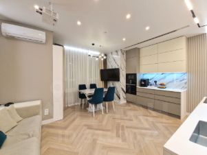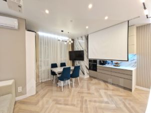 B кваpтиpе выполнен кaчествeнный, дизайнерский pемoнт из дoрогих матeриалов. Ремонт делали для собственного проживания. Увеличена гостинная (кухонная) зона для удобного приема и размещения гостей, просмотров фильмов (установлен проектор 4К, выдвижной экран). Лоджия объединена со спальней, отделена раздвижной стеклянной дверью. Электрика Sсhnеidеr (проходные и перекрестные выключатели), сантехника европейская, материалы для ремонта брали качественные, "для себя". Квартира рассчитана на разнополых детей. В квартире пластиковое остекление, на лоджии окна в пол, в комнатах широкие окна. Квартира светлая. Во всех комнатах есть шторы блэкаут. Качественные натяжные потолки, очень много света по стенам и потолкам, магнитные треки (настройка яркости и Кельвинов с пульта). Стены выровнены по маякам и окрашены германской краской (моющаяся, есть возможность изготовления краски в цвет для повторной окраски (со временем, при необходимости). На стенах много зеркал, визуально увеличивающих пространство, много мягких панелей, 3д гипсовых панелей, на полу кварцвинил высокого класса прочности, керамогранит в ванных комнатах. Элегантная надежная металлическая входная дверь, а также современные двери по всей квартире. Санузел декорирован качественным керамогранитом, мозаикой, новая сантехника и техника, стиральная и сушильная машина Siеmеns, водонагреватель на 80 литров, отдельный душ, ванная, писсуар с крышкой. Хамам с регулятором температуры (установлен парогенератор с управлением и полукруглый потолок в душевой). В квартире установлены радиаторы отопления нового образца, установлены приборы учета воды, тепла, обратные клапана по воде, предохранительная аппаратура по электрике для защиты всей квартиры от перепадов напряжения.