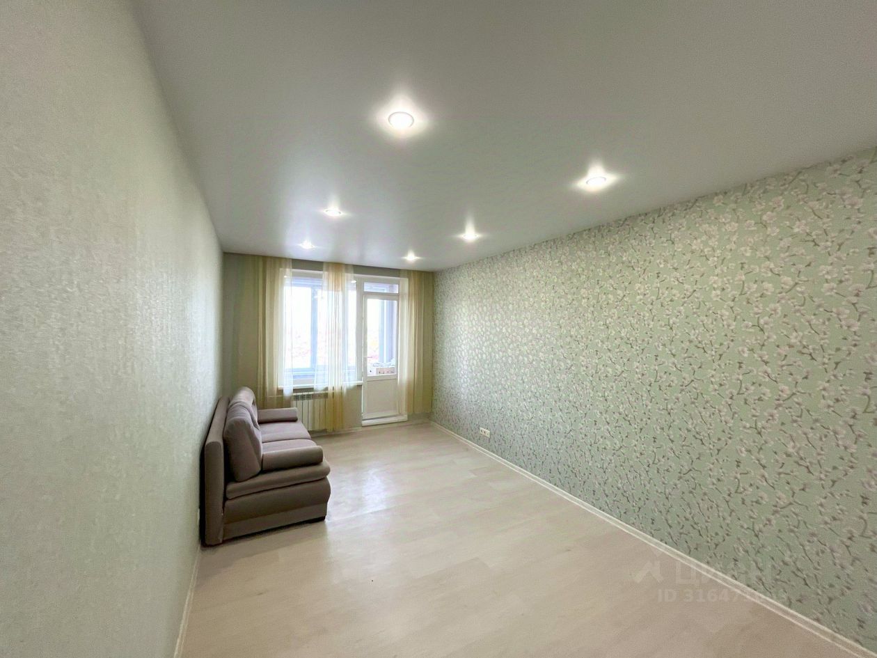 В квартире выполнен современный ремонт из качественных материалов: на полу ламинат, потолки натяжные. Ванная комната в плитке, установлена фирменная сантехника. Кухонный гарнитур в цветовом сочетание со стенами, бытовая техника от производителя Weissgauff.
