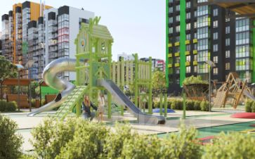 Современный квартал, который состоит из четырех жилых комплексов (Синий двор, Желтый, Оранжевый и Зеленый) с закрытыми дворами без машин. Архитектура и благоустройство каждого двора выполнены в уникальной цветовой гамме. Парковка организована по периметру домов.