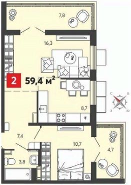 2-комн. квартира в ЖК "Радужные дворы" на 3 этаже. Квартира без отделки, полностью готова к ремонту. Общая площадь: 59.4 кв.м., жилая: 27 кв.м., площадь кухни: 8.7 кв.м. Квартира угловая, идеально подойдет любителям тишины и панорамных видов. В квартире два балкона, один совмещенный санузел. Высота потолков 2.68 м.