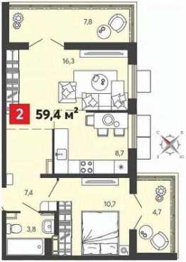 2-комн. квартира в ЖК "Радужные дворы" на 9 этаже. Квартира без отделки, полностью готова к ремонту. Общая площадь: 59.4 кв.м., жилая: 27 кв.м., площадь кухни: 8.7 кв.м. Квартира угловая, идеально подойдет любителям тишины и панорамных видов. В квартире два балкона, один совмещенный санузел. Высота потолков 2.68 м.
