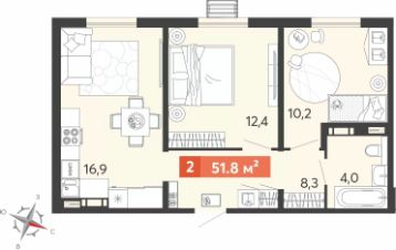 Просторная 2-комн. квартира в ЖК "Новин в Нижнем Ломове" на 2 этаже. Квартира без отделки, после оформления собственности можно делать ремонт. Общая площадь: 51.8 кв.м., жилая: 22.6 кв.м., площадь просторной кухни-столовой: 16.9 кв.м. Комнаты изолированные, все окна выходят на одну сторону. В квартире один совмещенный санузел. Высота потолков 2.74 м.