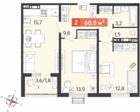 Просторная 2-комн. квартира в ЖК "Новин в Нижнем Ломове" на 4 этаже. Квартира без отделки, после получения ключей можно делать ремонт. Общая площадь: 60.5 кв.м., жилая: 26.7 кв.м., площадь просторной кухни-столовой: 15.7 кв.м. Комнаты изолированные, все окна выходят на одну сторону. В квартире одна лоджия, один раздельный санузел. Высота потолков 2.74 м.