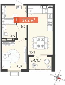 Продается 1-комн. квартира в ЖК "Новин в Нижнем Ломове" на 5 этаже. Квартира без отделки, полностью готова к ремонту. Общая площадь: 37.2 кв.м., жилая: 8.9 кв.м., площадь просторной кухни-столовой: 15.1 кв.м. Все окна выходят на одну сторону. В квартире одна лоджия, один совмещенный санузел. Высота потолков 2.74 м.