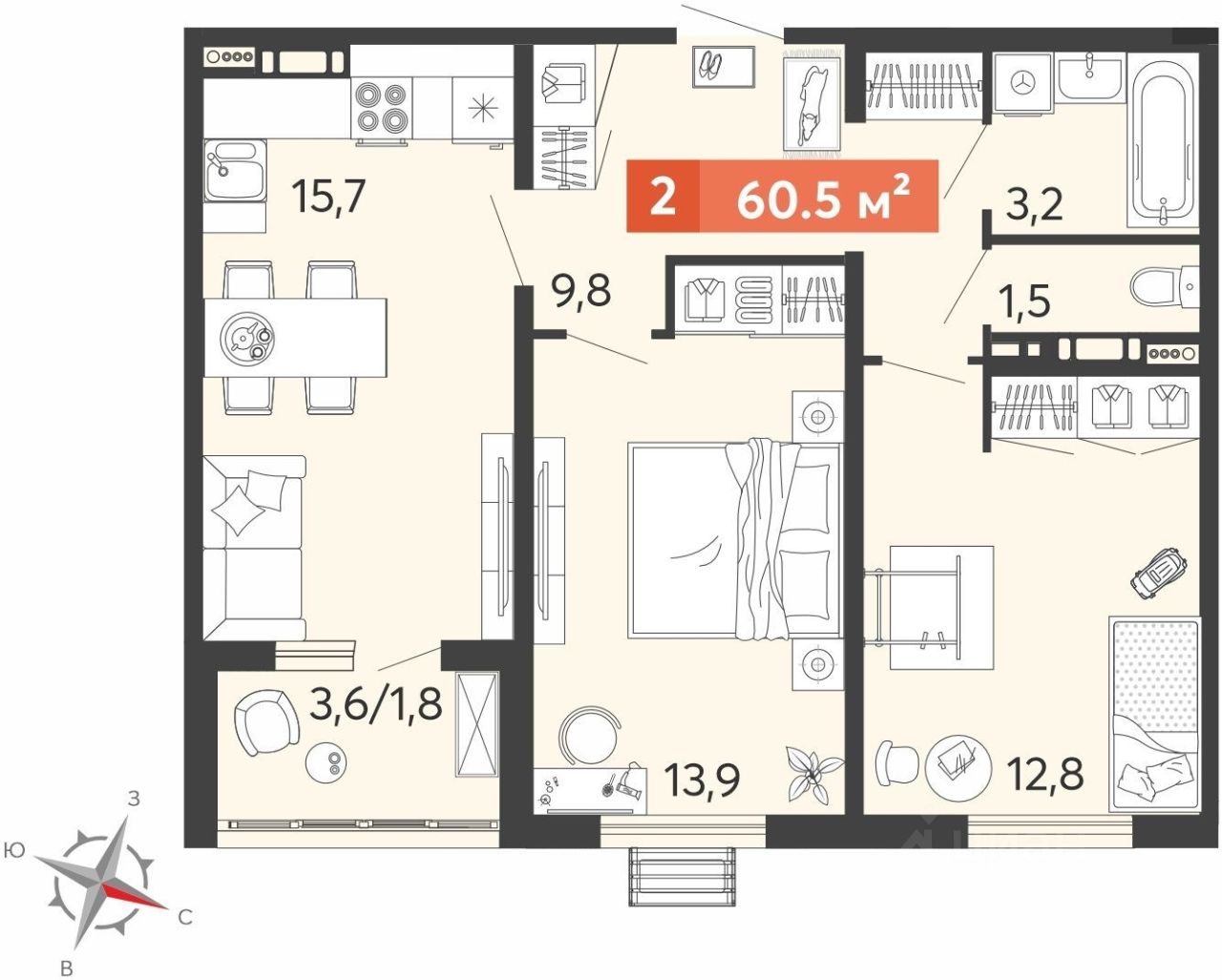 Двухкомнатная квартира от застройщика в ЖК "Новин в Нижнем Ломове" на 5 этаже. Квартира без отделки, новый владелец может сделать ремонт по индивидуальному дизайн-проекту. Общая площадь: 60.5 кв.м., жилая: 26.7 кв.м., площадь просторной кухни-столовой: 15.7 кв.м. Комнаты изолированные, все окна выходят на одну сторону. В квартире одна лоджия, один раздельный санузел. Высота потолков 2.74 м.