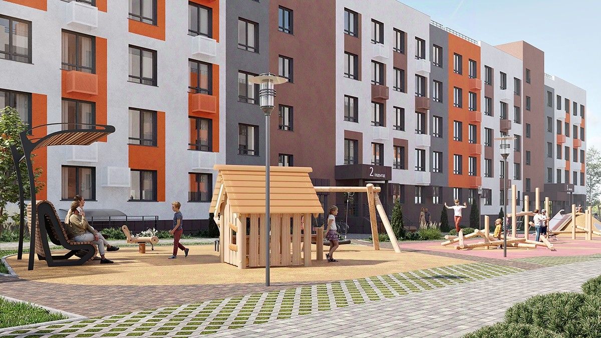 Концепция закрытого двора без машин, видеонаблюдение, зонирование территории для раздельного отдыха детей и взрослых. Детские площадки с ударопоглощающим покрытием и оборудованием из экологичных материалов.
