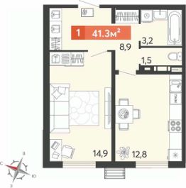 Просторная 1-комн. квартира в ЖК "Новин в Нижнем Ломове" на 1 этаже. Квартира без отделки, новый владелец может сделать ремонт по индивидуальному дизайн-проекту. Общая площадь: 41.3 кв.м., жилая: 14.9 кв.м., площадь просторной кухни-столовой: 12.8 кв.м. Все окна выходят на одну сторону. В квартире один раздельный санузел. Высота потолков 2.74 м.
