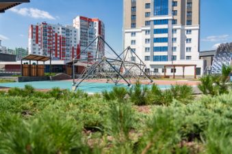 Двор закрытый, с уникальным благоустройством: тематические детские площадки, зоны спорта, необычные арт-объекты и прогулочные аллеи в окружении зелени.