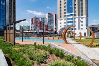 Двор закрытый, с уникальным благоустройством: тематические детские площадки, зоны спорта, необычные арт-объекты и прогулочные аллеи в окружении зелени.