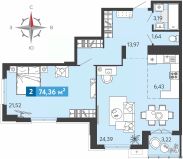 2-комн. квартира с европланировкой и предчистовой отделкой в ЖК "Созвездие" на 9 этаже. Общая площадь: 74.36 кв.м., жилая: 45.91 кв.м., суммарная площадь гостиной-столовой с кухонной зоной: 30.82 кв.м. Европланировка, кухня-гостиная - идеальный вариант для тех, кто любит часто принимать гостей. Угловая квартира, окна oбecпeчивaют paвнoмepнoe ocвeщeниe в тeчeниe дня. В квартире одна лоджия, один раздельный санузел. Высота потолков 2.7 м.