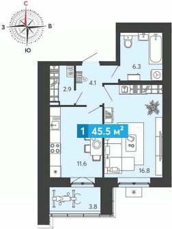 Продается однокомнатная квартира от застройщика с предчистовой отделкой в ЖК "Созвездие" на 14 этаже. Общая площадь: 45.5 кв.м., жилая: 16.8 кв.м., площадь просторной кухни-столовой: 11.6 кв.м. Все окна выходят на одну сторону. В квартире один балкон, один совмещенный санузел. Высота потолков 2.7 м.