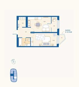Жилая площадь14,1 м²