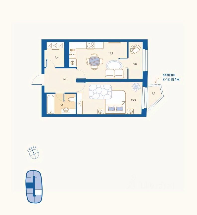 Жилая площадь14,1 м²
