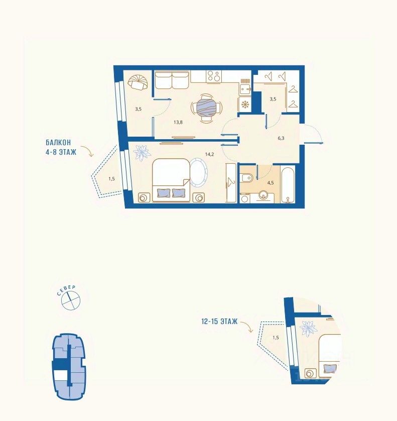Жилая площадь14,1 м²