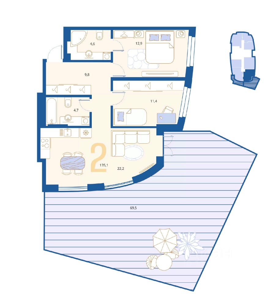 Площадь кухни22,2 м²