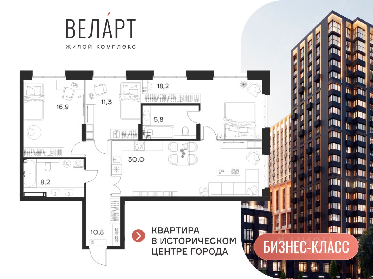 ВЕЛАРТ жилой комплекс бизнес-класса в историческом центре города, на пересечении улиц Богданова и Свердлова. Сдача первой очереди летом 2026 года! Квартиру можно посмотреть уже сейчас