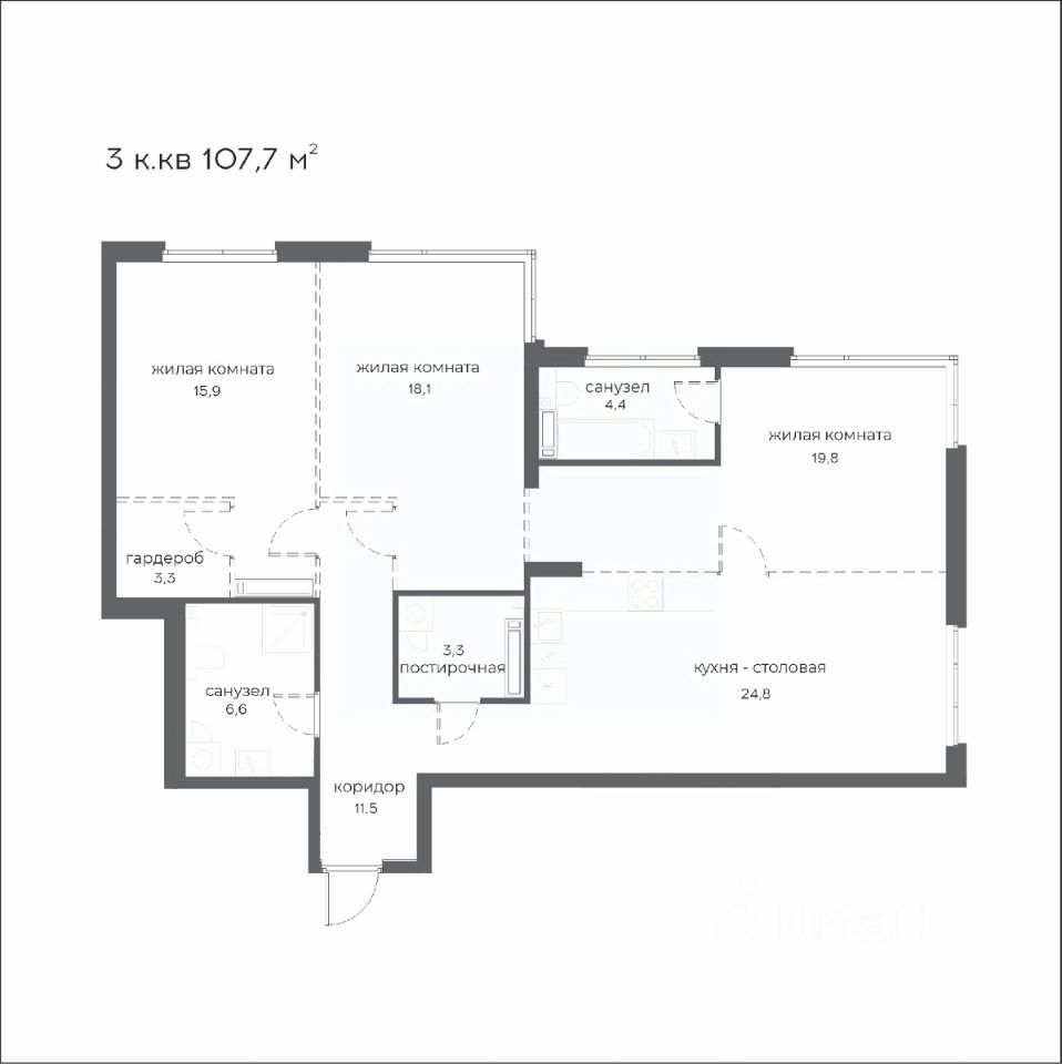 Общая площадь107,7 м²