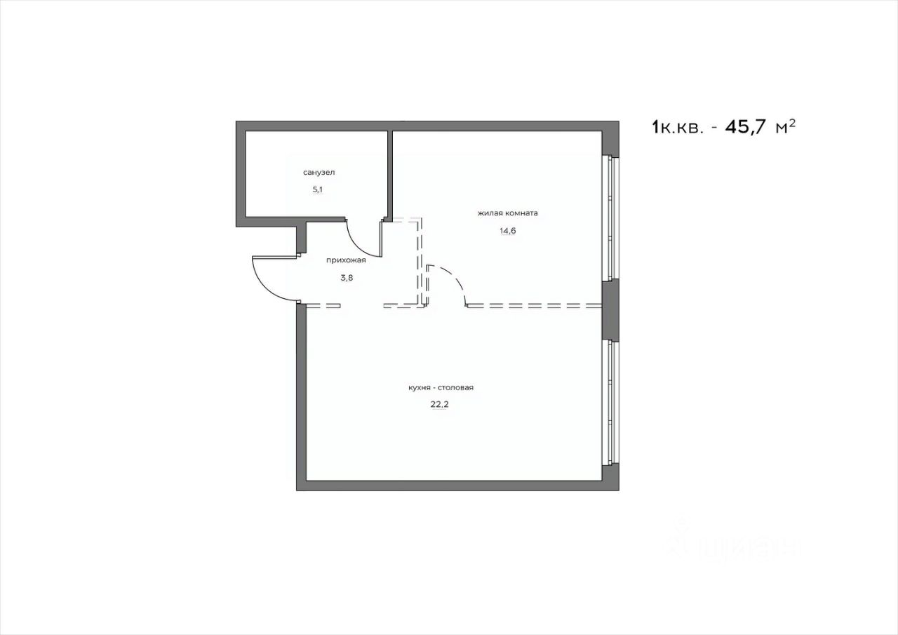 Общая площадь45,7 м²