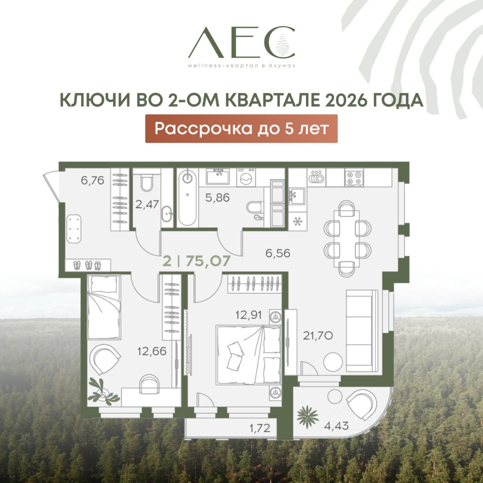 ЛЕС wellness-квартал в экологически чистом районе Ахуны Сдача первой очереди летом 2026 года! Квартиру можно посмотреть уже сейчас Большой выбор условий оплаты от DEWELL group: - Ипотека от 4,6% без удорожания - Рассрочка до конца строительства 0% - Рассрочка до 5 лет, без участия банка - Рассрочка в первоначальным взносом 1 000 000 рублей - TRADE IN от застройщика Преимущества wellness-квартала ЛЕС: Собственный лесной парк, где под тенью сосен расположилось множество зон для отдыха и развлечений: - Зоны для занятий йогой - Беседки для пикника - Детское пространство с горками, батутами и качелями - Универсальная спортивная площадка летом, которая зимой превращается в каток Дворовое пространство: - Детские велодорожки на территории двора - Навесы с ширмами для отдыха - Детское пространство с площадкой для игры с водой, большая песочница с навесом - Гамаки и лежаки для тихого отдыха -Спортивные зоны с теннисными столами *Огороженная и охраняемая территория двора без машин Авторские холлы с зоной ожидания, санузлами, колясочными и велосипедными Квартиры с видом на лес: - Просторные кухни-гостиные - Мастер-спальня - Закрытые лоджии - Летние лоджии - Уникальные лоты с потолками 3,3м Расположение: -Ввело-лыже-роллерная трасса-1 мин пешком -Школа 19/Детский сад 23- 5 мин на машине -Открытый бассейн-6 мин на машине -Теннисный корт "Семейный"-6 мин на машине -Русская охота-8 мин на машине -Высшая лига-15 мин на машине *Стоимость актуальна на момент размещения объявления