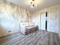В квартире выполнен качественный, современный евро-ремонт. Полностью заменены напольные покрытия: стяжка по всей площади квартиры, износостойкий ламинат в жилых комнатах, прочный керамогранит в прихожей и кухонной зоне. Заменены все коммуникации водоснабжения и канализации, электропроводка. Установлены современные пластиковые окна. Натяжные потолки придают помещению стильный вид, а ванная комната оформлена в кафеле современного образца. Стены в жилых помещениях выровнены и оклеены обоями, в зоне прихожей - декоративная штукатурка, что позволяет сразу же заехать и наслаждаться жизнью. Качественные и стильные межкомнатные двери придадут индивидуальность Вам, как владельцу. Стоит отметить качественную и надежную входную металлическую дверь, что даст ощущение полной безопасности. Просторная, застеклённая лоджия позволит организовать дополнительно пространство для отдыха или хранения.