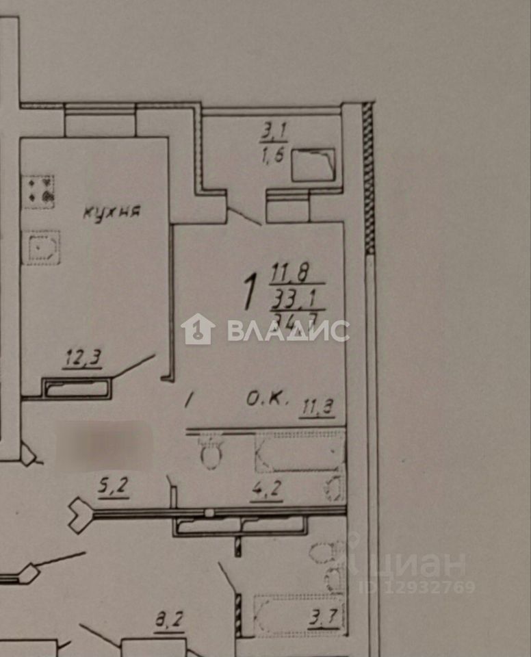 Общая площадь: 35,8 кв.м. с учетом лоджии (без лоджии 32,7 кв.м.)