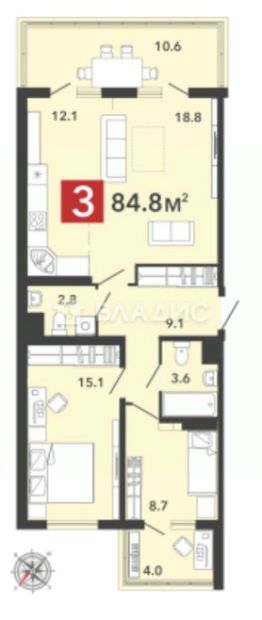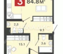 Общая площадь: 84,8 кв.м.