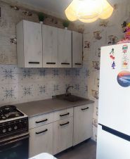 Кухня 6.7 кв м в которой установлен новый кухонный гарнитур.