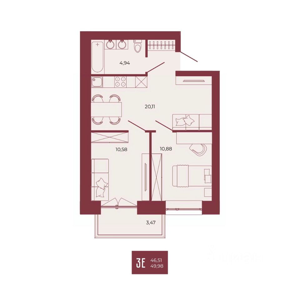 Общая площадь49,98 м²