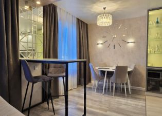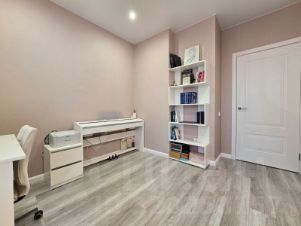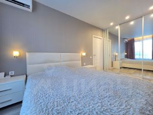 При продаже остается: в зоне гостиной: кухонный гарнитур, варочная поверхность, духовой шкаф, вытяжка, посудомоечная машина, холодильник, барная стойка с двумя барными стульями, электрокамин с обогревом. В прихожей: большой встроенный шкаф купе. В спальне 1: большой встроенный шкаф купе, кондиционер. В спальне 2: книжные полки. В С/У навесной шкаф, навесные полки, стиральная машина. В ванной комнате установлена угловая ванна с джакузи.