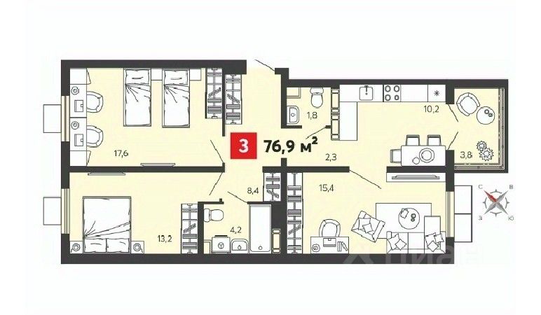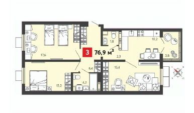 Общая площадь76,9 м²