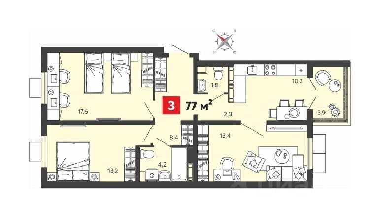 Общая площадь77 м²