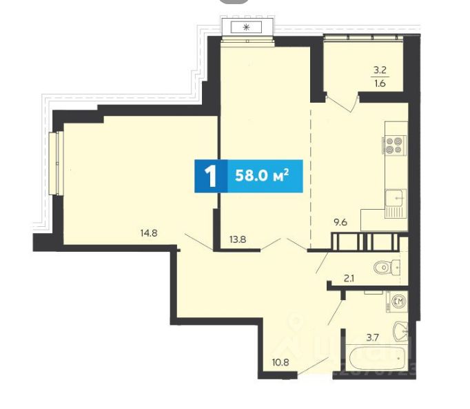 Общая площадь58 м²