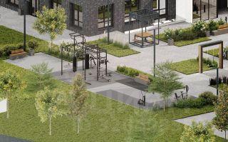 Дома комплекса будут соединены стильным стилобатом в котором будут размещены коммерческие помещения различного назначения от кофейни до фитнес-зала и медицинского центра.