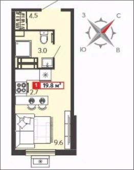 1-комн. квартира-студия от застройщика с предчистовой отделкой в ЖК "Радужные дворы" на 11 этаже. Общая площадь: 19.8 кв.м., площадь гостиной 12.3 кв.м., из которых 2.7 кв.м. выделено под кухонную зону. Все окна выходят на одну сторону. В квартире один совмещенный санузел. Высота потолков 2.68 м.