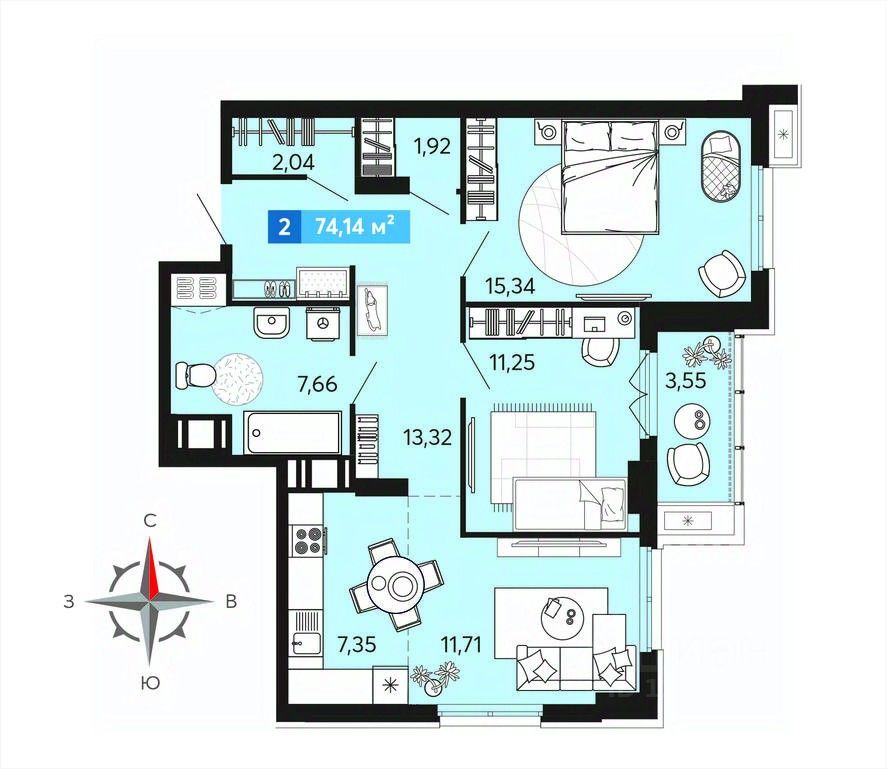Продается двухкомнатная квартира от застройщика с предчистовой отделкой в ЖК "Созвездие" на 8 этаже. Общая площадь: 74.14 кв.м., жилая: 26.59 кв.м., площадь просторной кухни-столовой: 29.06 кв.м. Угловая квартира, идеально подойдет любителям тишины и панорамных видов. В квартире одна лоджия, один совмещенный санузел. Высота потолков 2.7 м.