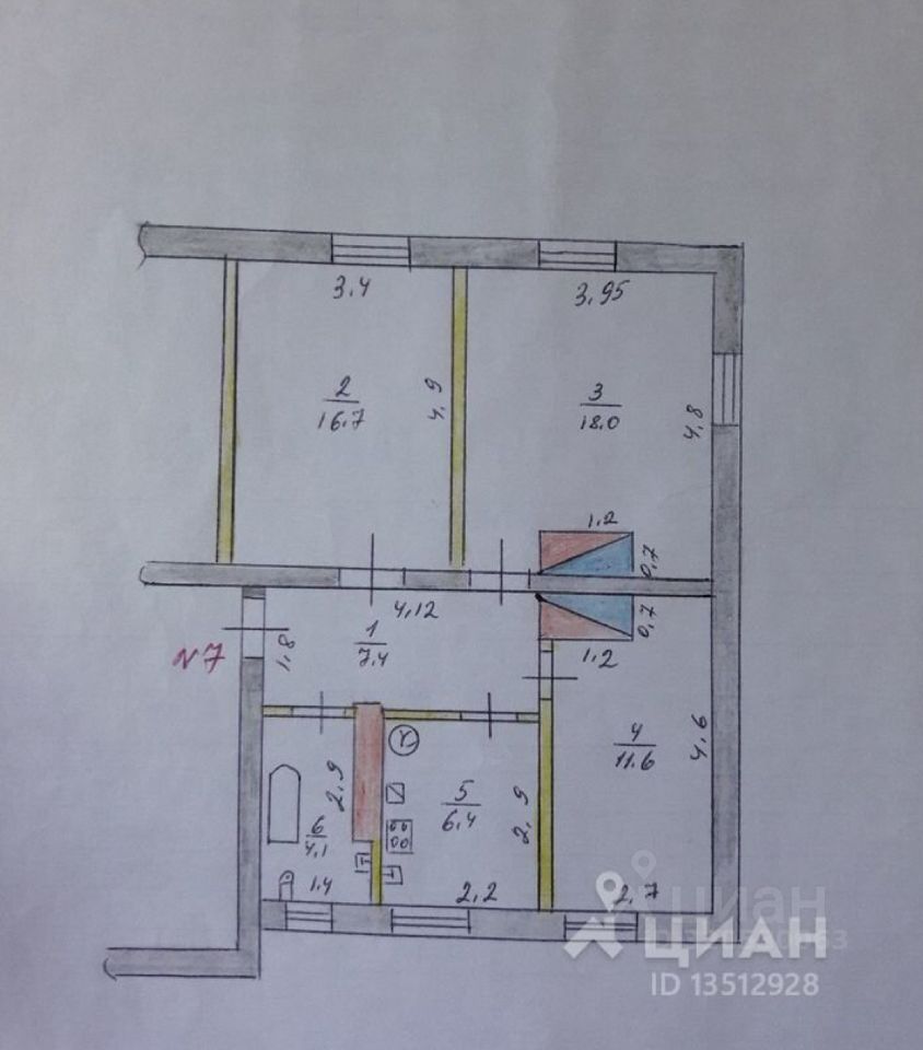 6,4 м²