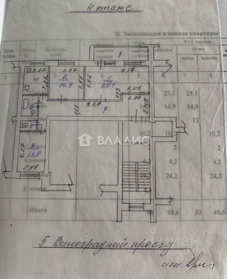 В продаже 3-комнатная квартира распашонка по адресу: 5-й Виноградный проезд д.16