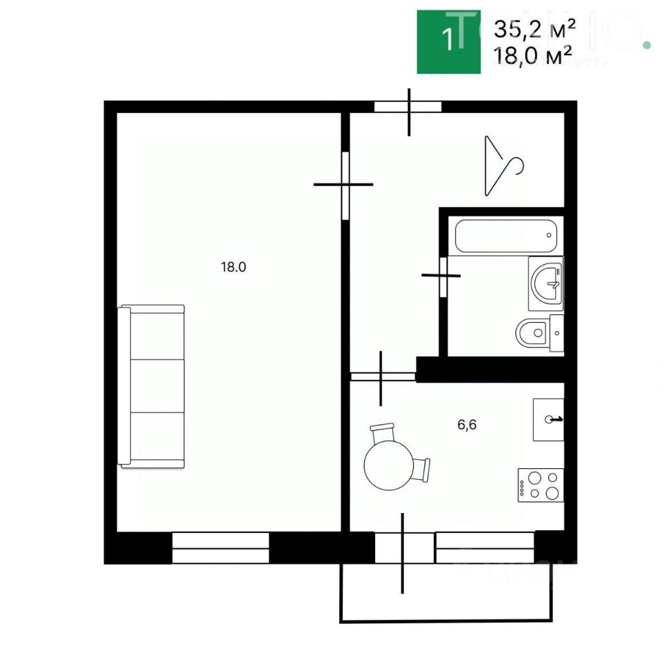 Общая площадь — 35,2 м²