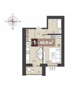 Общая площадь: 45,9 кв.м.