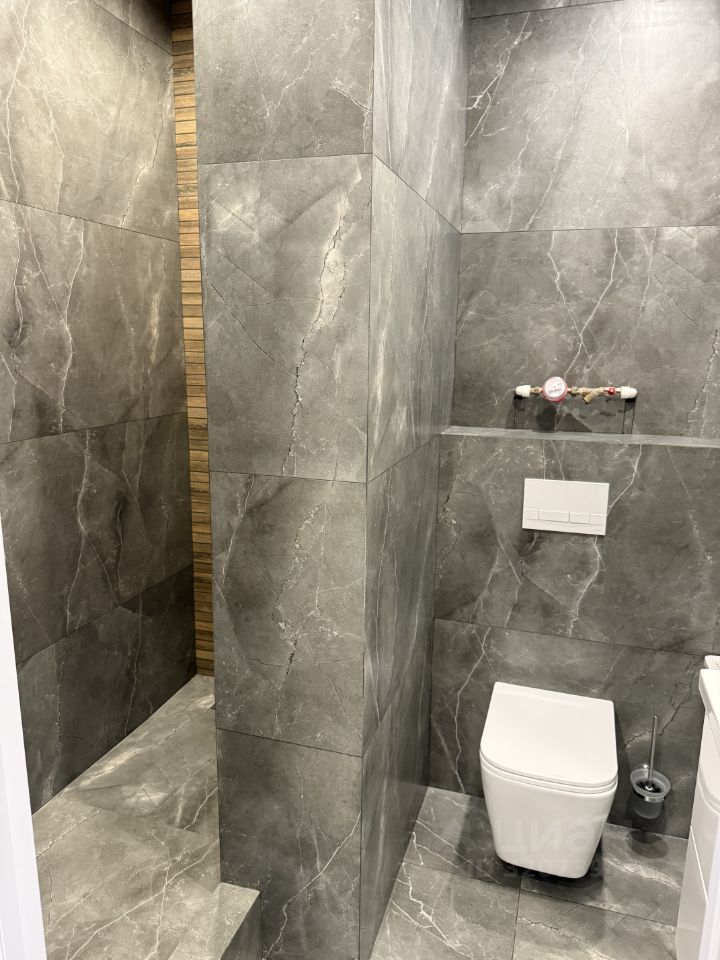 Кварцвинил, декоративная штукатурка, качественные керамогранит и сантехника, кондиционер, тонированные панорамные окна не от застройшика (тройной стеклопакет), дорогие двери, теплый пол. Отдельная гардеробная, современная встроенная душевая кабина.