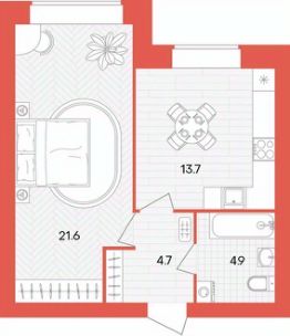 Жилая площадь21,6 м²