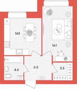 Жилая площадь16,1 м²