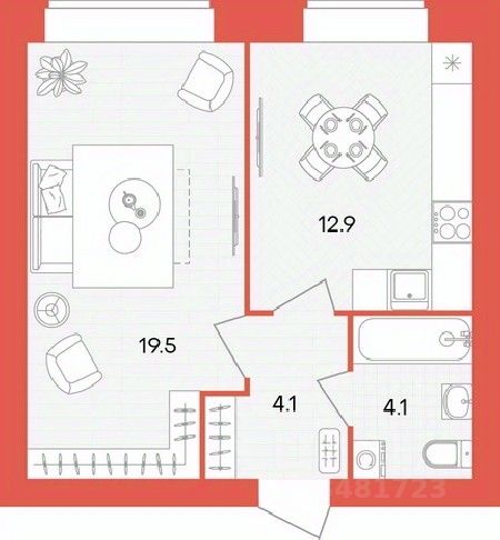 Жилая площадь19,5 м²
