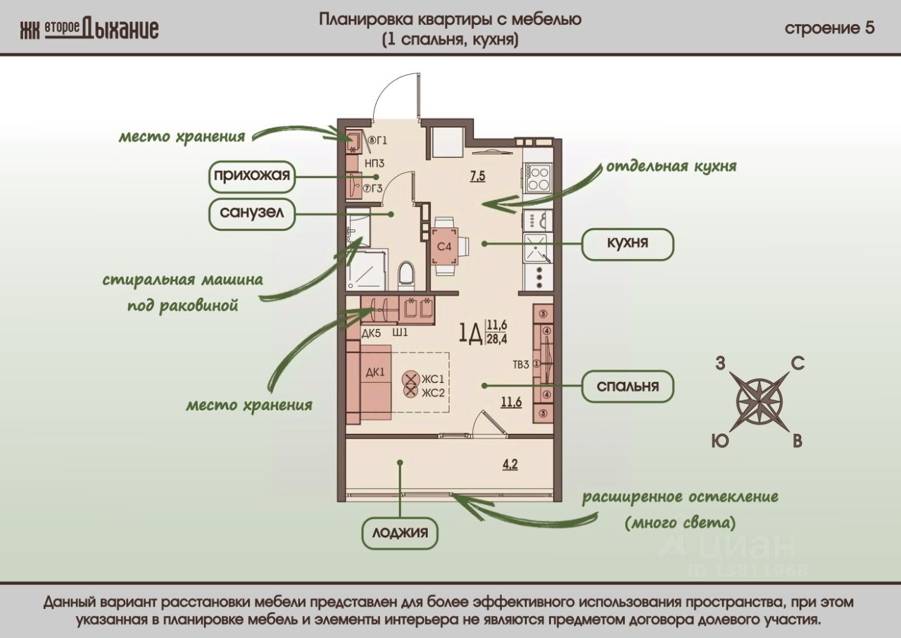Оцените эту однокомнатную квартиру с функциональной жилой зоной. Сохранение максимума полезной жилплощади за счет отсутствия "мертвых" зон вроде коридоров и проходов. Общая площадь 28.4 м2. Грамотное зонирование данной планировки по достоинству оценит каждый. Всё пространство условно поделено на 4 части (зона отдыха, кухня, прихожая, санузел). Гостиная площадью 19,1 м2 комфортная как для проживания, так и встречи гостей. При этом отдельная кухонная зона составляет 7,5 м2. При входе располагается встроеннная ниша для хранения верхней одежды. Данное планировочные решение подходит для проживания не только одного, но и нескольких членов семьи. Квартира, куда хочется возвращаться, отдыхать и проводить время с родными и близкими!