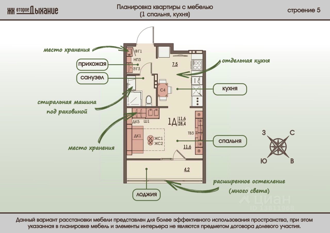 Оцените эту однокомнатную квартиру с функциональной жилой зоной. Сохранение максимума полезной жилплощади за счет отсутствия "мертвых" зон вроде коридоров и проходов. Общая площадь 28.4 м2. Грамотное зонирование данной планировки по достоинству оценит каждый. Всё пространство условно поделено на 4 части (зона отдыха, кухня, прихожая, санузел). Гостиная площадью 19,1 м2 комфортная как для проживания, так и встречи гостей. При этом отдельная кухонная зона составляет 7,5 м2. При входе располагается встроеннная ниша для хранения верхней одежды. Данное планировочные решение подходит для проживания не только одного, но и нескольких членов семьи. Квартира, куда хочется возвращаться, отдыхать и проводить время с родными и близкими!
