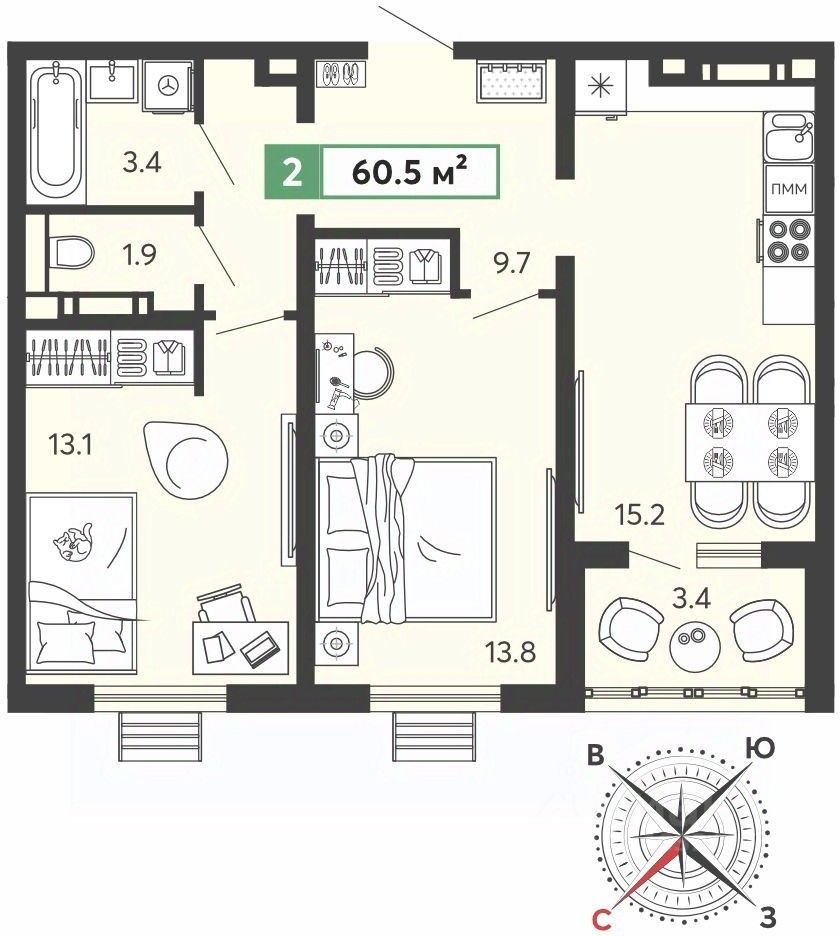 Двухкомнатная квартира от застройщика в ЖК "Спутник" на 11 этаже. Квартира без отделки, новый владелец может сделать ремонт по своему проекту. Общая площадь: 60.5 кв.м., жилая: 26.9 кв.м., площадь просторной кухни-столовой: 15.2 кв.м. Комнаты изолированные, все окна выходят на одну сторону. В квартире одна лоджия, один раздельный санузел. Высота потолков 2.68 м.