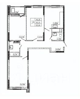 Продается трехкомнатная квартира площадью 83,04 кв.м. в новом доме по ул. Центральная, 23.