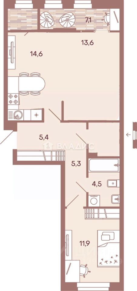 Кухня оборудована функциональным гарнитуром с встроенной техникой премиального бренда HAIR (посудомоечная машина, варочная поверхность, духовой шкаф, холодильник, микроволновая печь, вытяжка), что сделает процесс приготовления пищи максимально удобным и приятным.