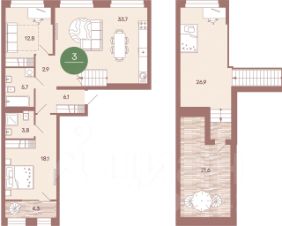 Кухня-гостиная со вторым светом - 33,7 кв.м.